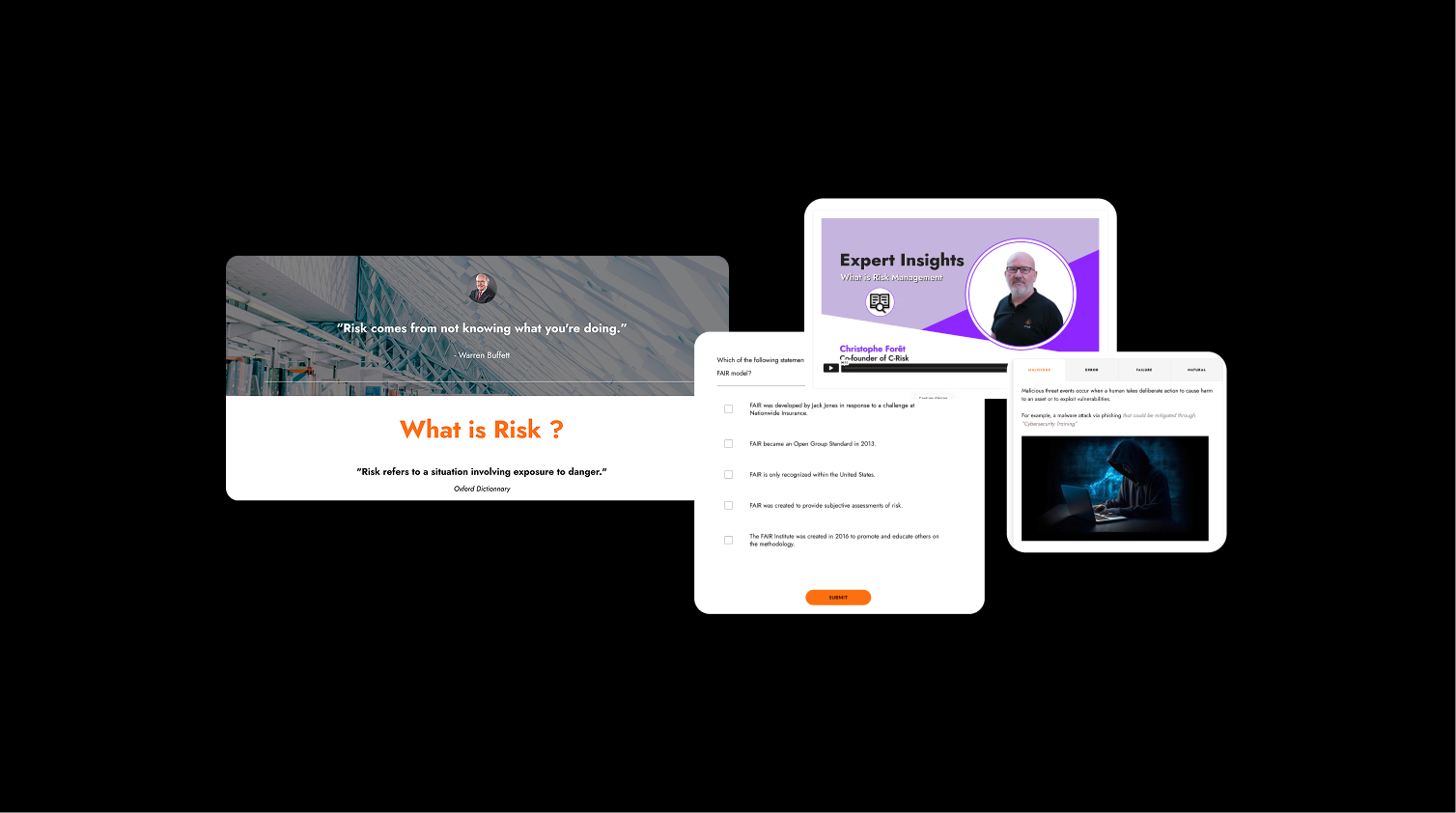 Connect with our certified experts to discuss data-driven risk management, FAIR-based training and e-learning, or for a demo of the SAFE platform. We help CISOs measure exposure, prioritize action, and bring clearer risk insight to leadership.
