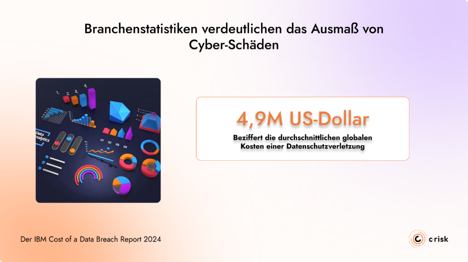 Branchenstatistiken verdeutlichen das Ausmaß von Cyber-Schäden: Der IBM Cost of a Data Breach Report 2024 beziffert die durchschnittlichen globalen Kosten einer Datenschutzverletzung auf 4,9 Millionen US-Dollar. Branchendurchschnitte allein können jedoch weder das spezifische Exposure eines einzelnen Unternehmens bestimmen noch beurteilen, ob die Deckungslimits einer Police sein tatsächliches Risikoprofil widerspiegeln.