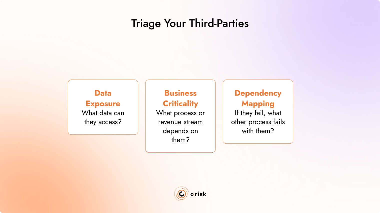 - Identify which suppliers matter most by mapping dependencies, data access, and business impact.